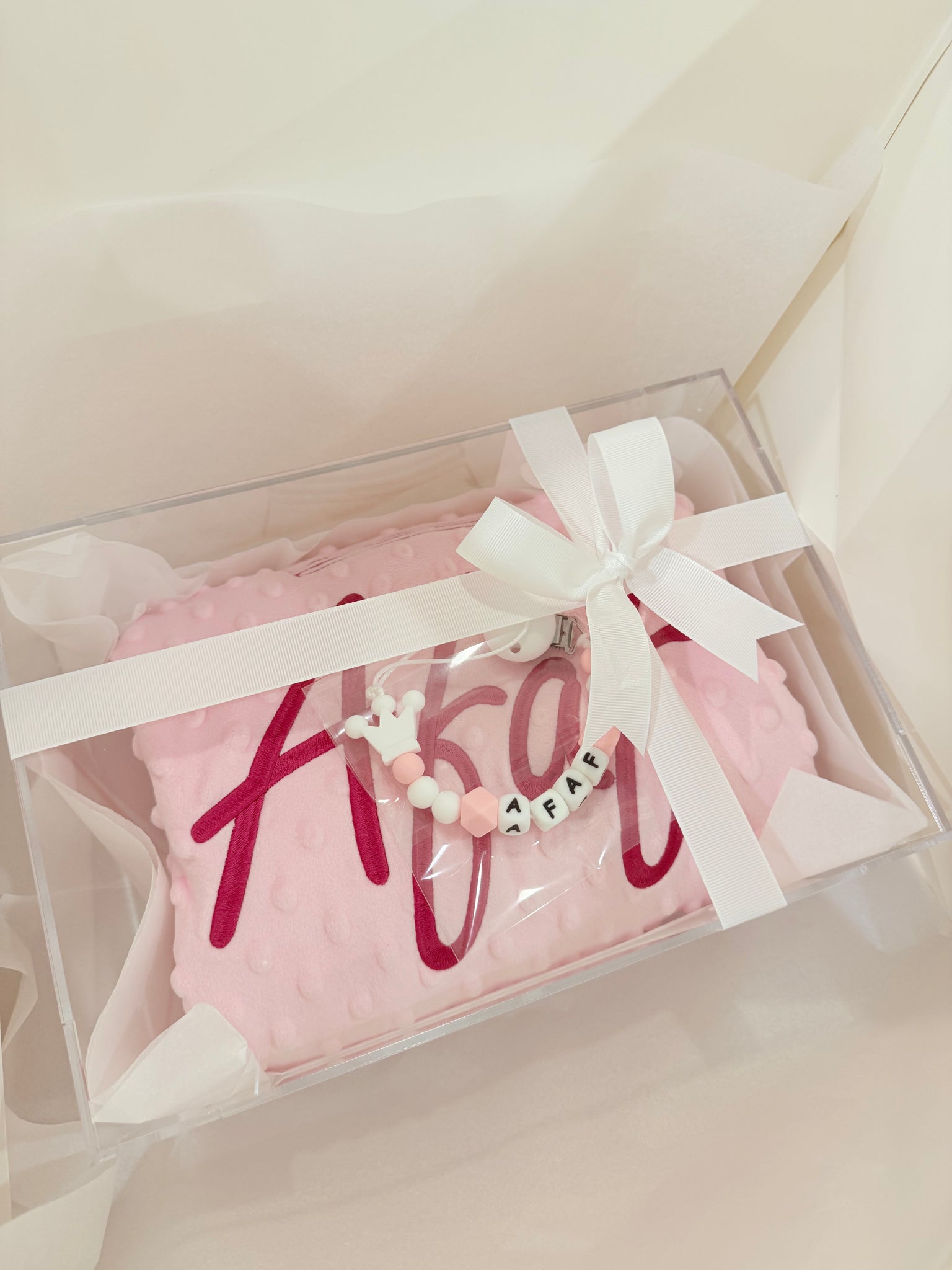 لحاف ناعم مع تطريز الإسم ، قياس اللحاف: 75سم * 100سم